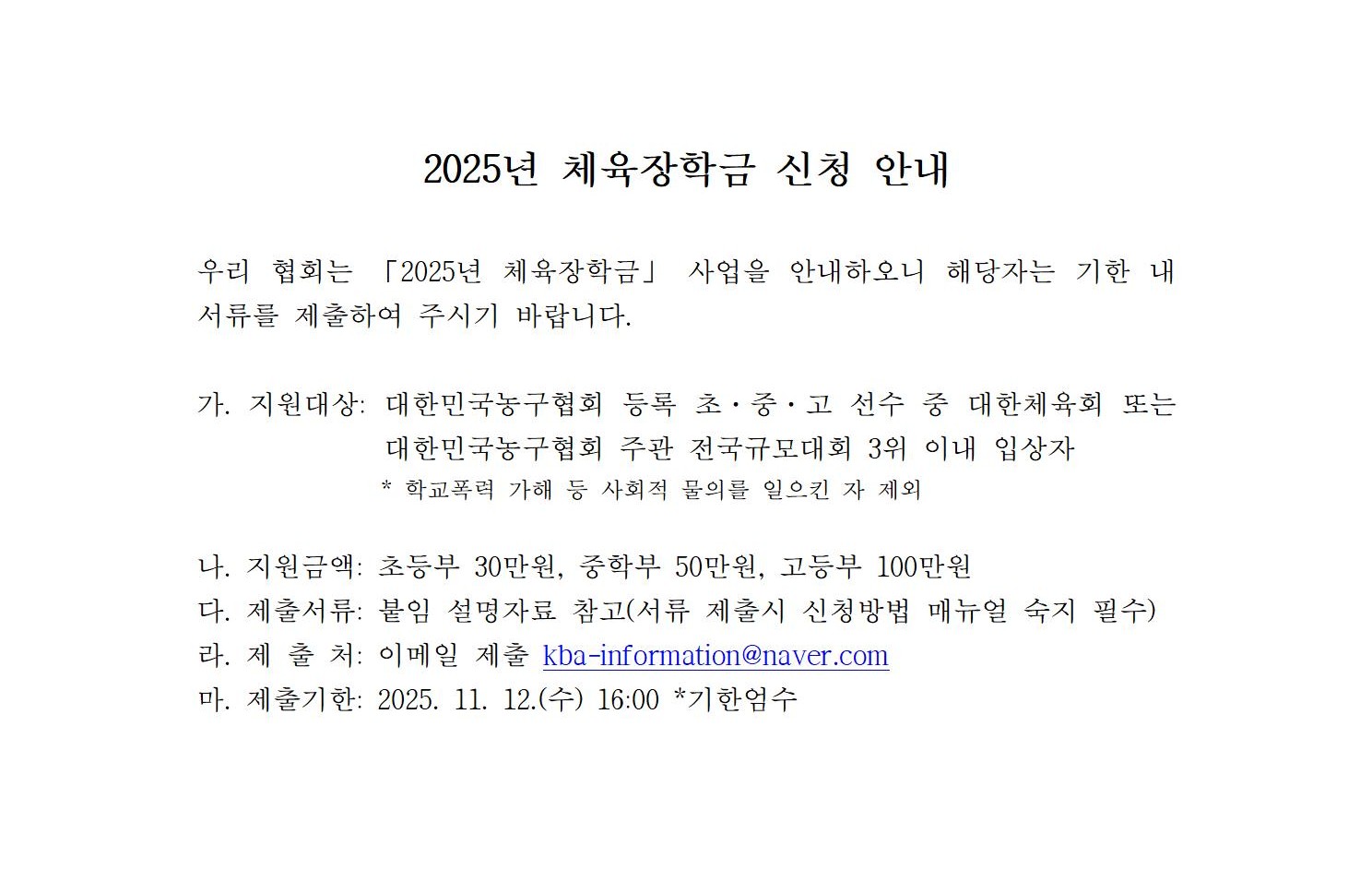 [안내] 2025년 체육장학금 신청