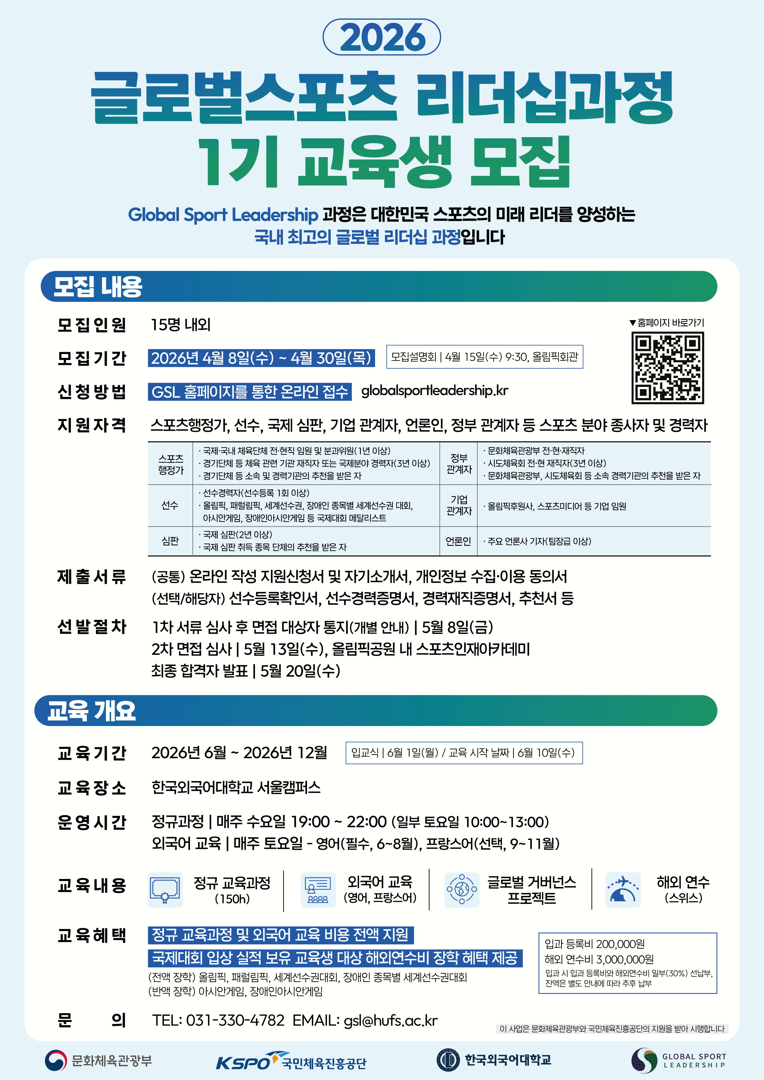 [안내] 2026년 글로벌스포츠 리더십과정 1기 교육생 모집
