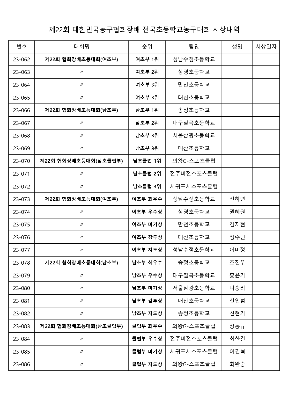 제22회 대한민국농구협회장배 전국 초등학교농구대회