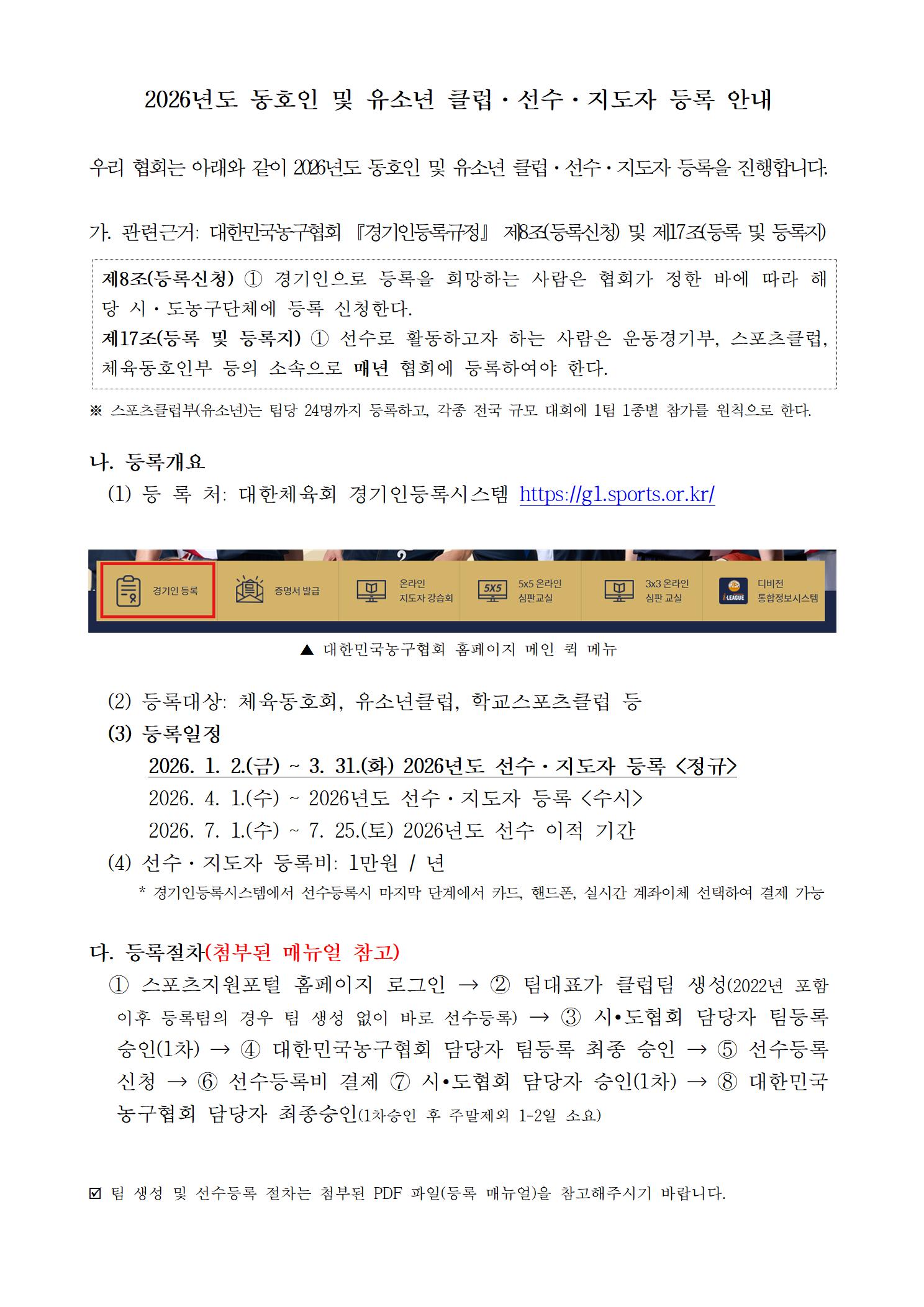 [안내] 2026년도 동호인 및 유소년 클럽·선수·지도자 등록(260112 updated)