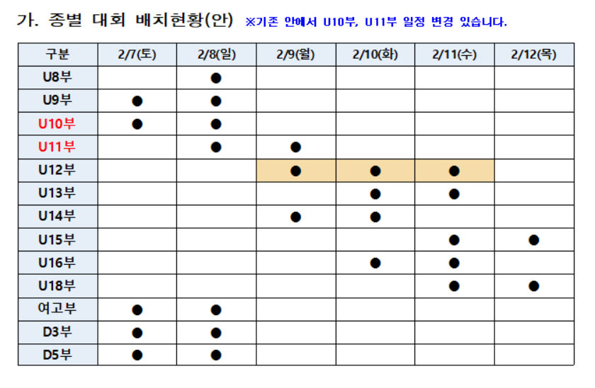 기존 공지대로 1월 30일(금)에 경기일정표 및 대진표 공지합니다.