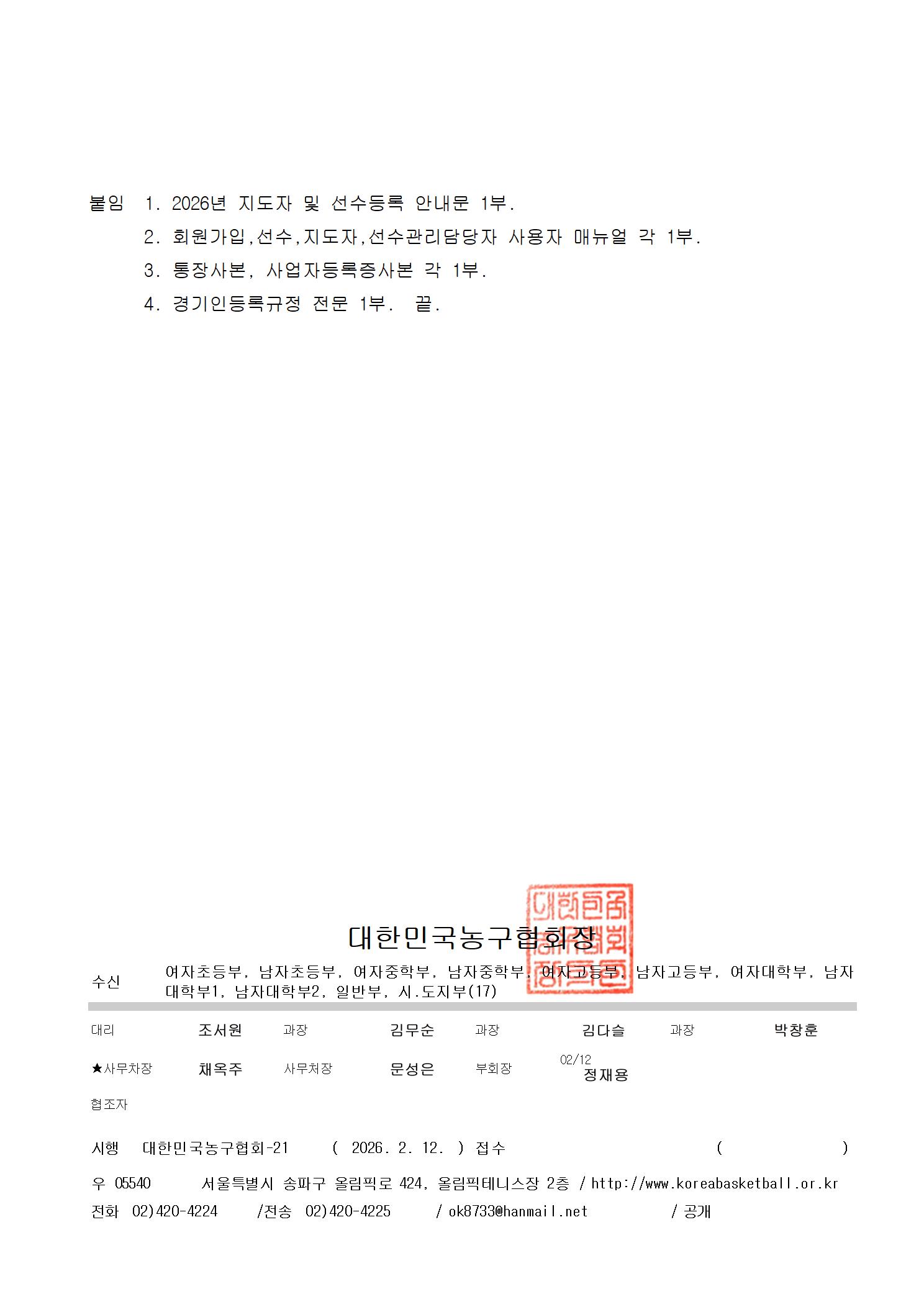 2026년도 경기인(선수, 지도자, 선수관리담당자)의 등록 안내
